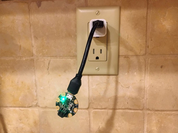 Then I plugged it in to an AC adapter with a short USB cable, but if you only have a long one, you could bunch it up with a twist tie.