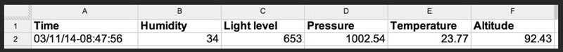 runAppendRow(humidity, lightLevel, pressure, temperature, altitude);