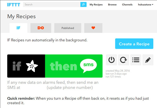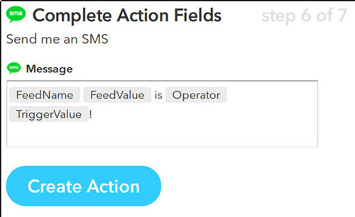 That's it! Now you've written an IFTTT recipe to monitor your io.adafruit.com feed and text you a message when it sees an alarm!