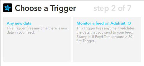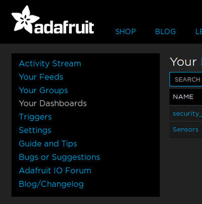 You want to click on "Monitor a feed on Adafruit IO" (the one on the right) for your security system. The next dialog will look something like this:
