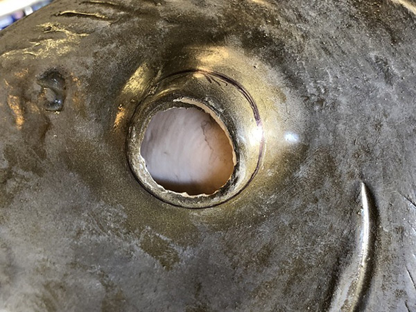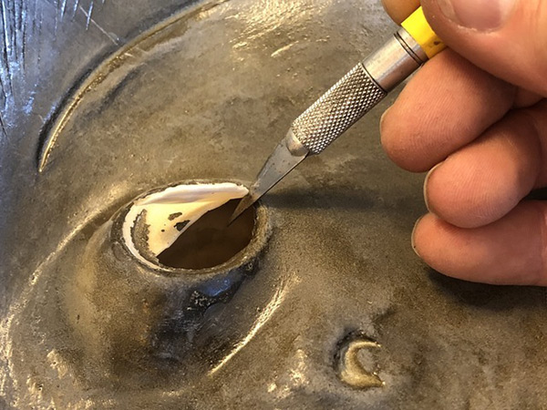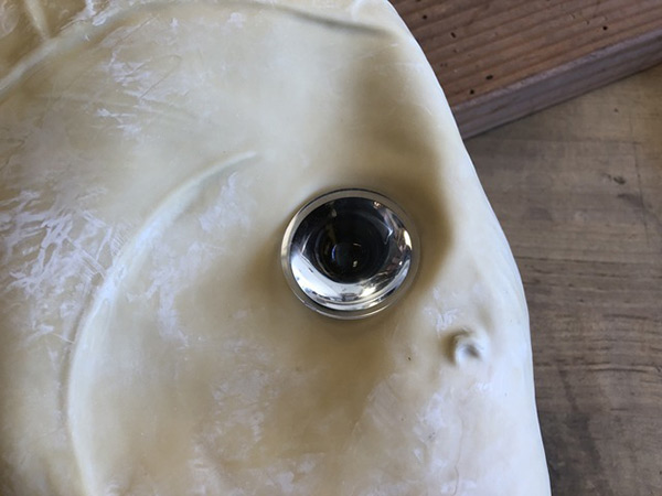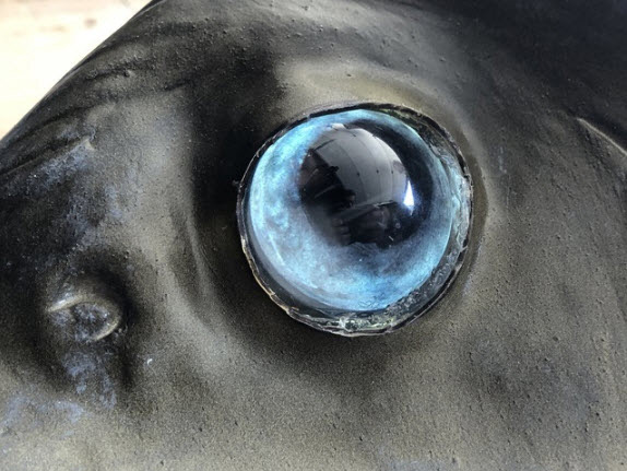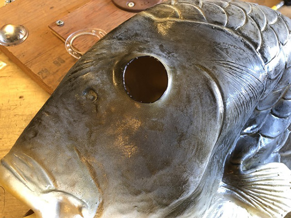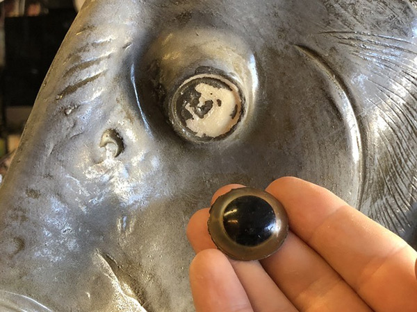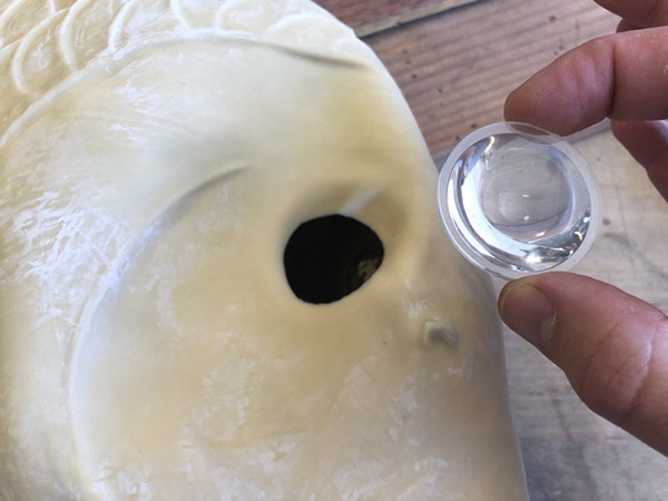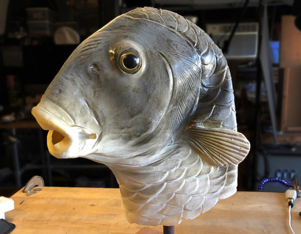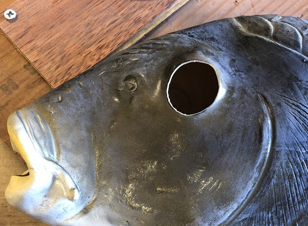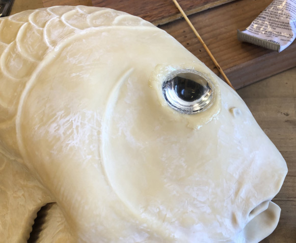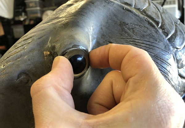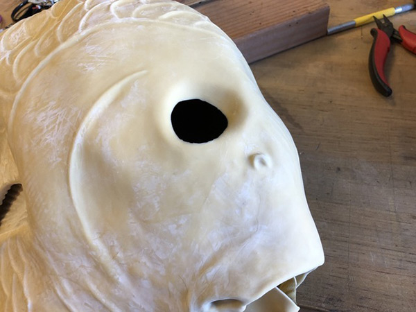 Next, we'll prepare our rubber fish head mask for the eye transplant.