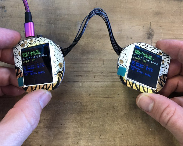 The MONSTER M4SK will not boot up just one half of the board, so be sure to plug them together with the 9-pin cable! Want a single eye board? Check out the HalloWing M0 or HalloWing M4.