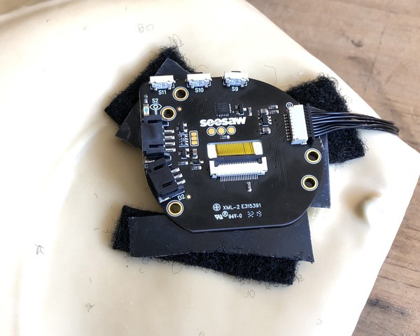 Add the complimentary hook side Velcro strips to the PCB of the MONSTER M4SK boards as shown, again pressing firmly for a strong bond.