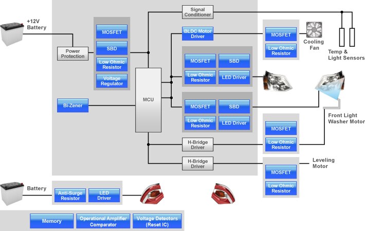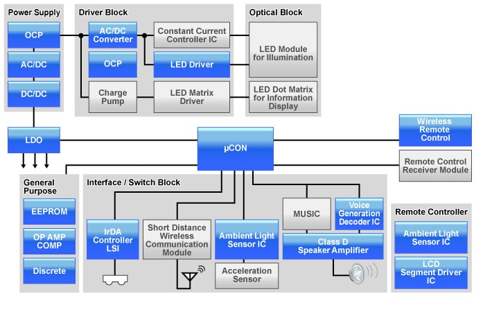 ROHM offers a broad lineup of LED driver ICs including Buck, Boost, or Charge Pumps. LED Drivers are available for Consumer, Industrial, or interior or exterior Automotive applications.