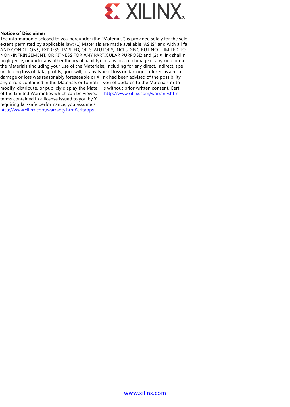 The information disclosed to you hereunder (the “Materials”) is provided solely for the selection and use of Xilinx products. To the maximum