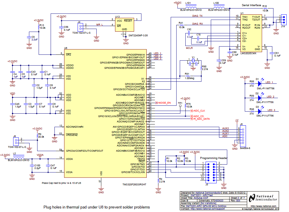 The SolarMagic™ reference design kit RD-195 includes the SM73201-ARC-EV PCB which is a UL1699B compliant Photo-Voltaic Arc Detect System with a minimal footprint of less than 50mm x 30mm. The reference design utilizes National Semiconductor’s advanced Analog technology along with an innovative dynamic filtering technique to effectively detect the signature of Arcing conductors in the presence of highly noisy real world environments.